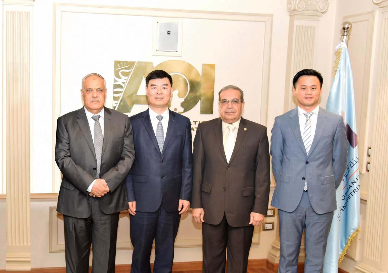 图为史超(右一)拜访埃及阿拉伯工业化组织主席,洽谈项目合作事宜