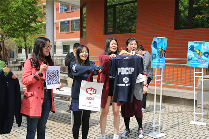 此次活动主要是通过向学院的老师、各类学生以及其他来到道口小院的人们进行本届学生节的宣传,同时推荐本届学生节的创意纪念产品,并以此形成筹集学生节举办基金的目的。当天参与活动的同学们为了更好地向大家进行宣传,可谓使出了浑身解数:会唱歌的亮出了好嗓子,会跳舞的放开了show一把,其余的都放开了嗓子吆喝着。