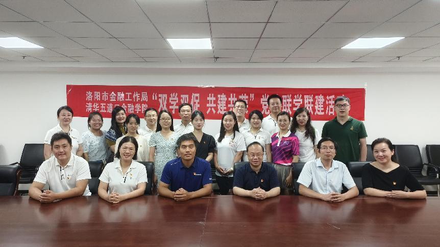 图为教职工第四党支部与洛阳市金融工作局机关党支部座谈交流后合影