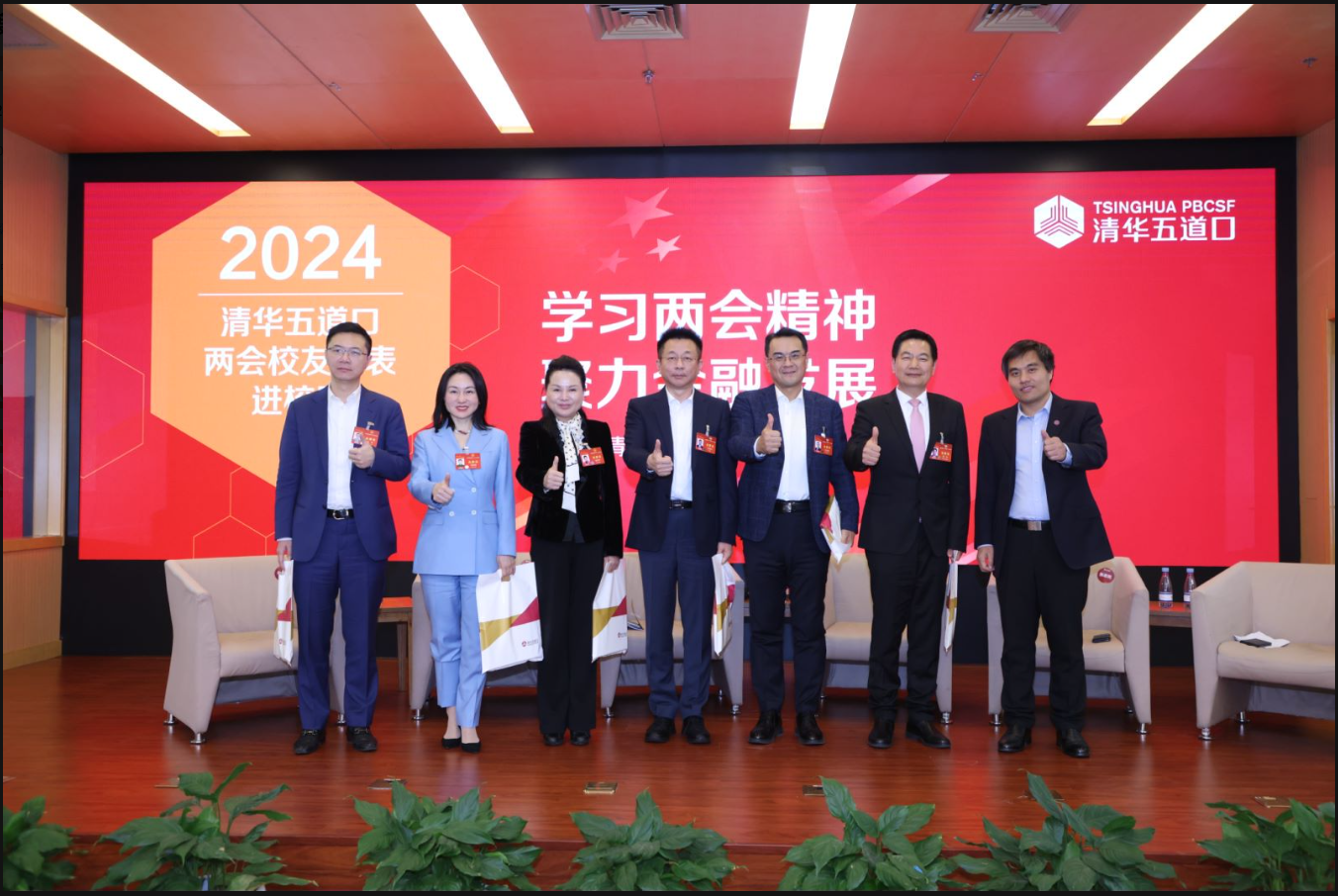 副院长田轩,全国人大代表、上海东莹棋投资控股股份有限公司董事长、北京棋森集团股份有限公司董事长、金融EMBA2019级校友冯琪雅,全国人大代表、荣华控股企业集团董事长、GSFD 5期校友崔荣华,全国政协委员、恒银金融科技股份有限公司党委书记、董事长、金融EMBA2019级院友江浩然,全国政协委员、哈尔滨东盛金材科技集团(股份)有限公司董事长、金融EMBA2019级校友张忠凯,全国政协委员、中华职业教育社副理事长、金融EMBA2020级校友苏华出席活动。嘉宾们围绕“学习两会精神,聚力金融发展”这一主题,就经济、金融、教育等国家发展重要议题深入讨论,并与在场师生亲切交流。