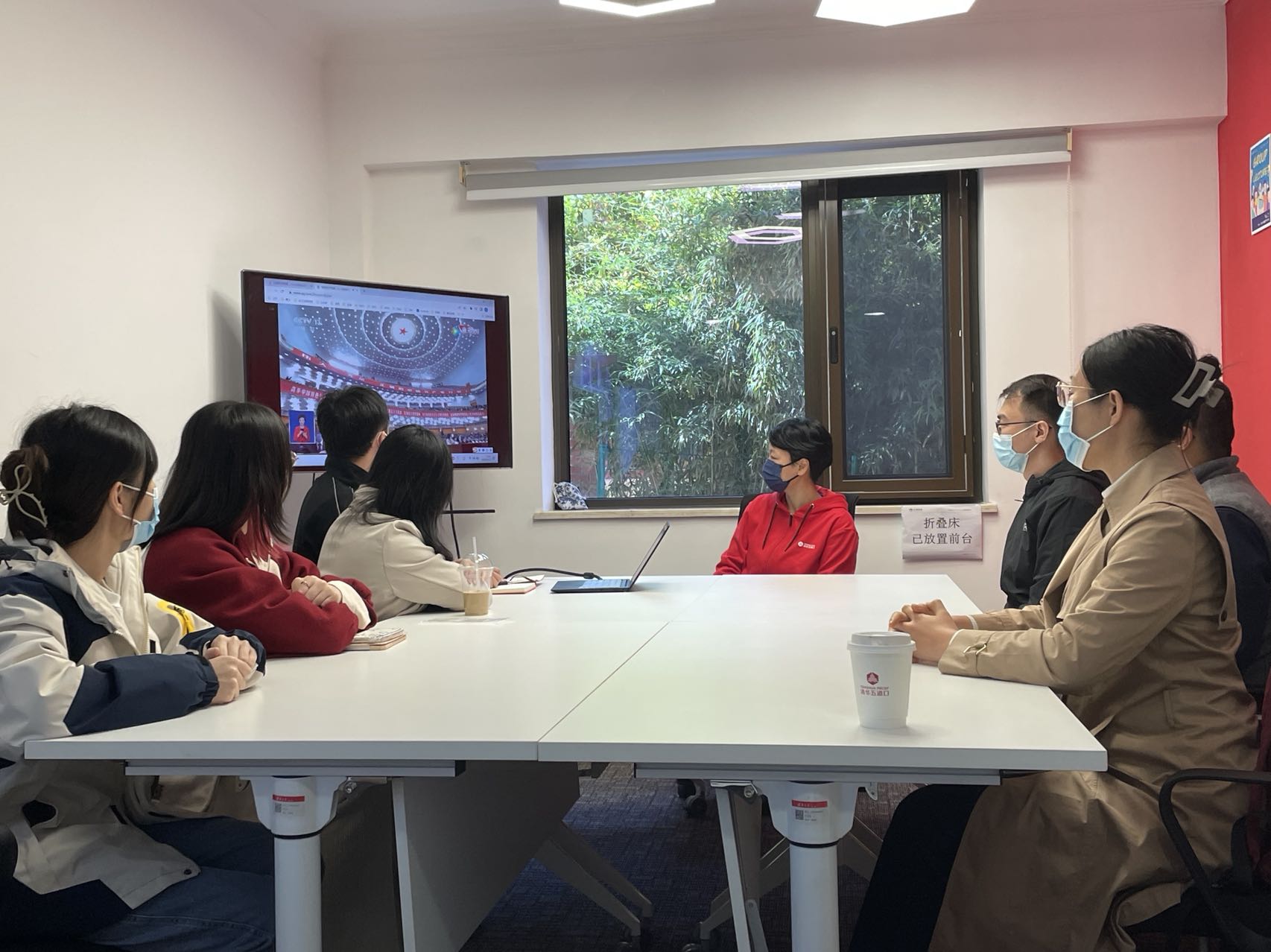 此外,学院副院长张晓燕课题组在学院129导学空间共同观看新闻联播,进行思政教育。