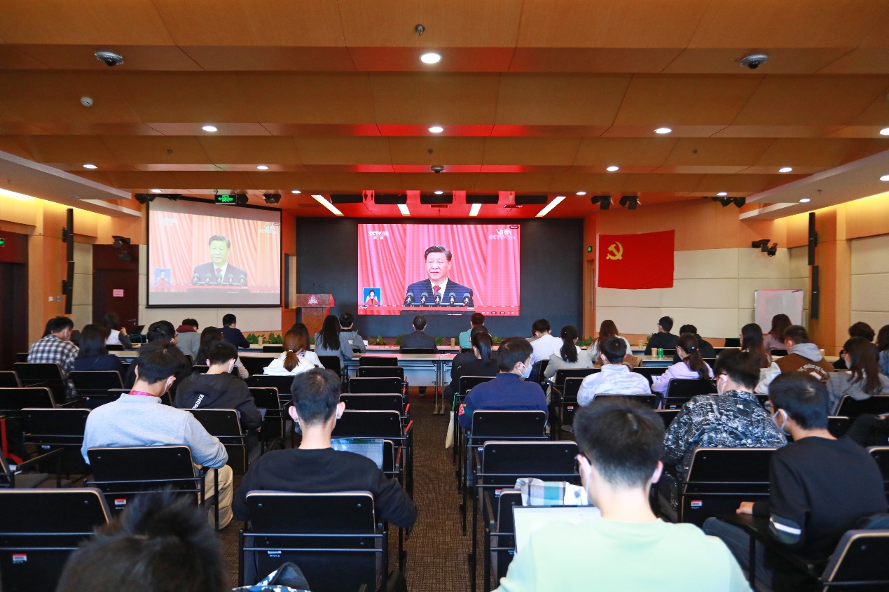 在满足疫情防控要求的前提下,学院党委书记顾良飞、党委副书记王正位、研工组组长刘悦等与同学们在学院4个会场共同收看开幕会盛况,关注热议总书记报告。在总书记两个小时的报告过程中,收看现场不时自发响起热烈的掌声。