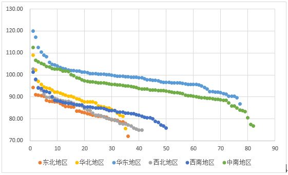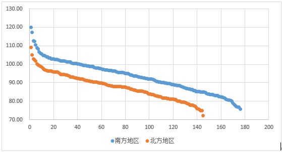 分区域城市指数排序分布(南北)