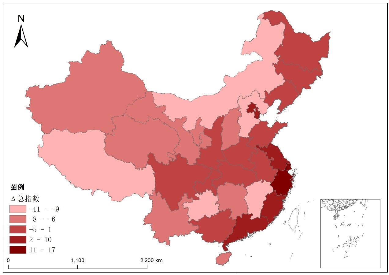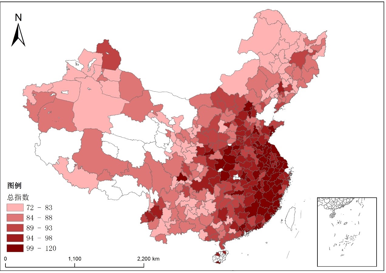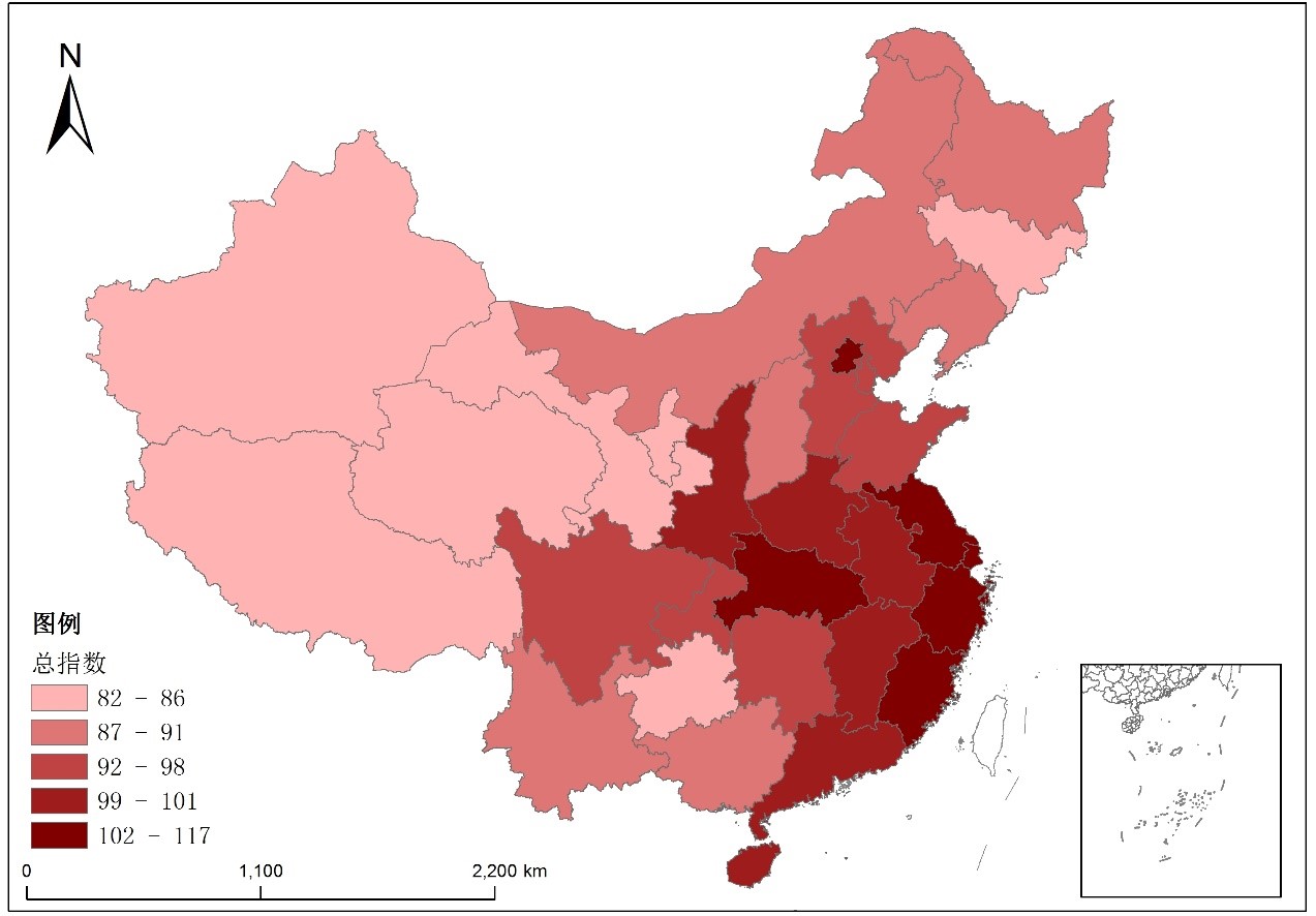 2.指数结果:东南和东部沿海地区较优