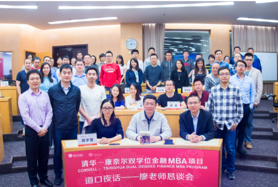 图:清华-康奈尔双学位金融MBA2015级学生与廖理教授、田轩教授合影留念