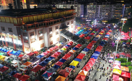 图为“村超”周边商业繁荣热闹的场景