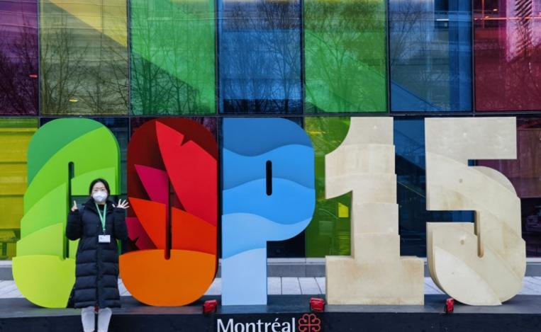 图为王艺轩在联合国《生物多样性公约》第十五次缔约方大会留影