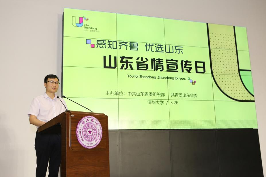 图为曹萌作为在鲁就业创业优秀清华校友代表与清华学子进行经验交流