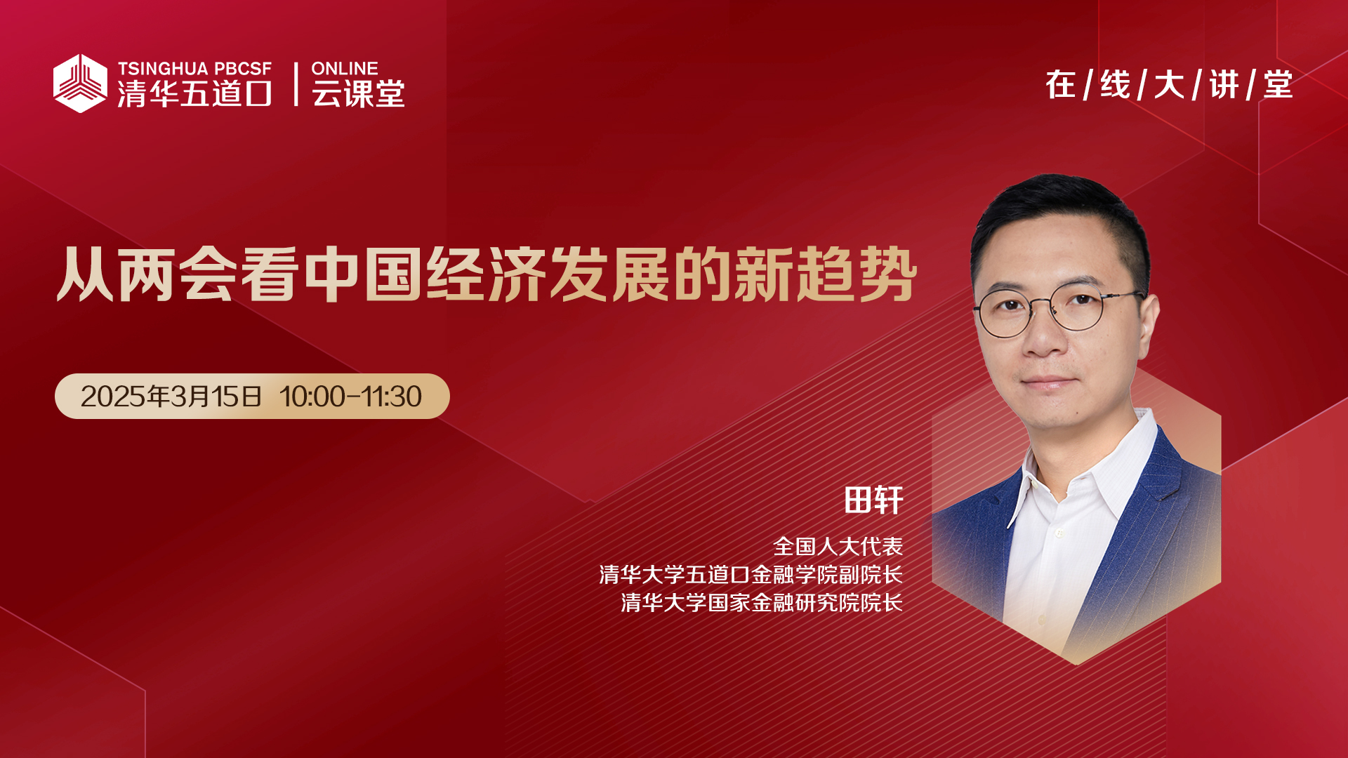 国家金融研究院院长田轩,围绕“从两会看中国经济发展的新趋势”主题作分享。田轩教授在讲座中回顾了2024年我国的经济发展主要成就,聚焦2025年政府工作报告中的主要经济发展指标和经济工作的重点部署进行立体化解读,并结合其参与全国两会的切身感受,分享他的观察和思考。