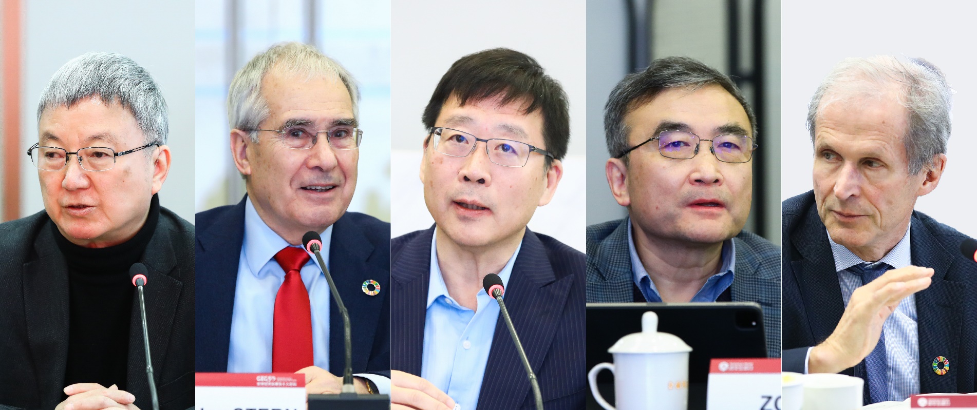 从左至右:朱民、尼古拉斯·斯特恩、王毅、邹骥、埃里克·伯格洛夫