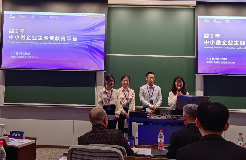 图为张心怡(右一)参加第一届研究生金融科技创新大赛决赛答辩