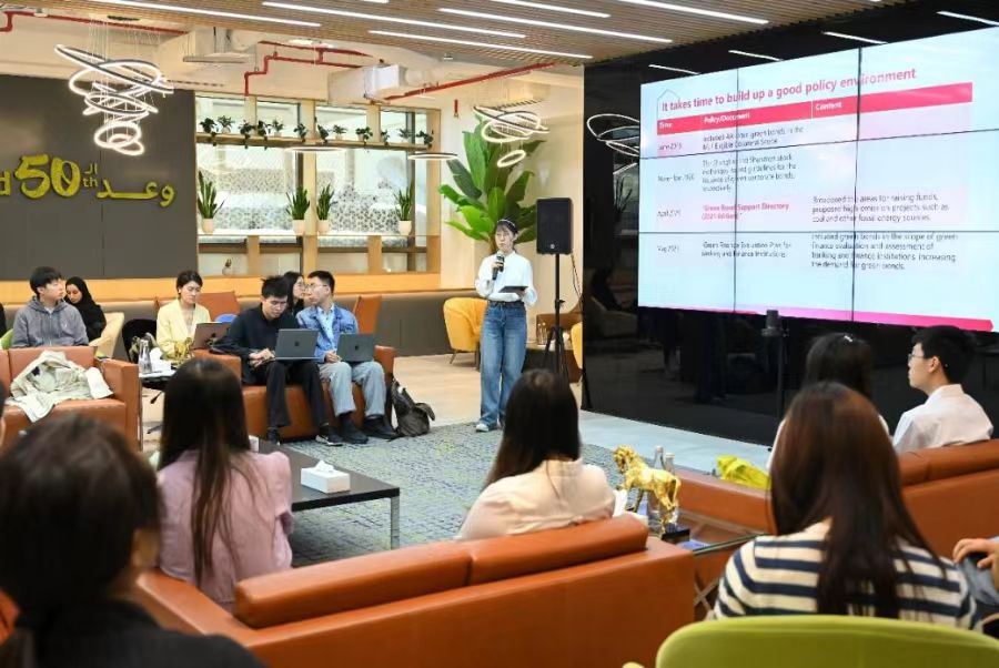 图为张心怡在阿布扎比经济发展署开展宣讲