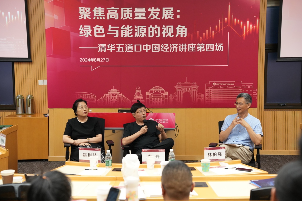 金融学讲席教授鞠建东担任主持,与史丹、林伯强两位嘉宾围绕欧美绿色转型速度放缓背景下我国面临的转型压力、氢能源汽车技术路线的发展前景、新能源产业升级过程中的供需平衡等话题展开讨论,分享自己的专业见解,并与在场听众积极互动。