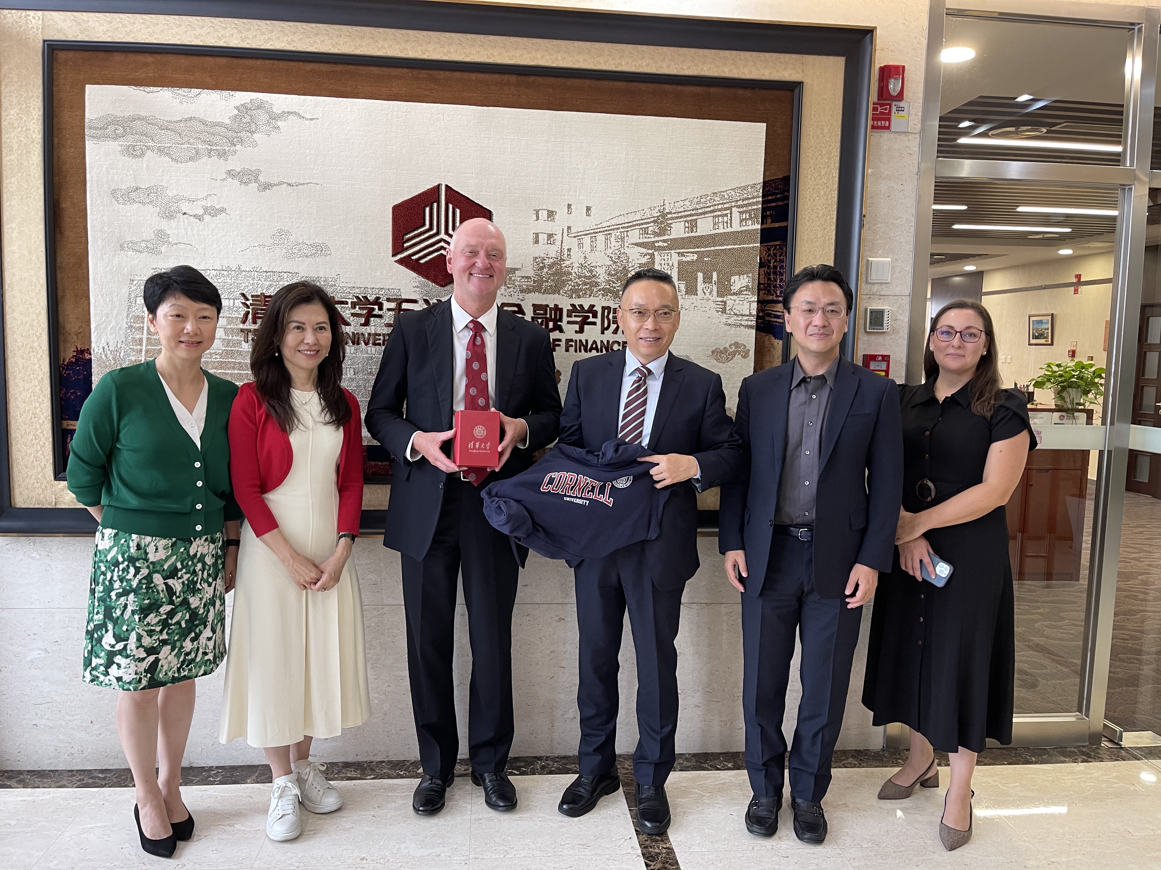 院长焦捷会见了来访的康奈尔大学约翰逊商学院院长安德鲁·卡罗伊 (Andrew Karolyi)、康奈尔大学约翰逊商学院中国事务院长陈雅如一行。此次会谈旨在进一步深化双方在双学位金融MBA项目上的合作,并探讨在人才培养、学术研究、教学培训、学科建设以及科技成果转化等领域的全面战略合作。
