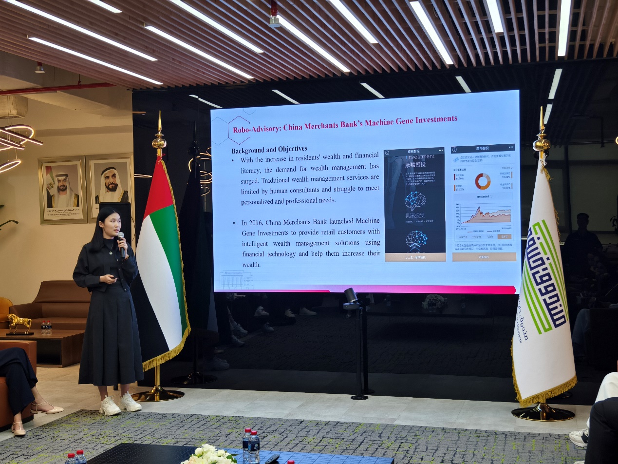 在中石油中东公司和阿布扎比经济发展部(ADDED)的交流中,支队成员分享了中国在金融科技领域的前沿探索与创新成果。分享了中国金融科技的演进历程,重点介绍了大数据信贷和智能投顾等创新案例,展示了技术创新如何推动普惠金融、智能投顾发展,打破传统金融壁垒,让更多小微企业和普通消费者受益。