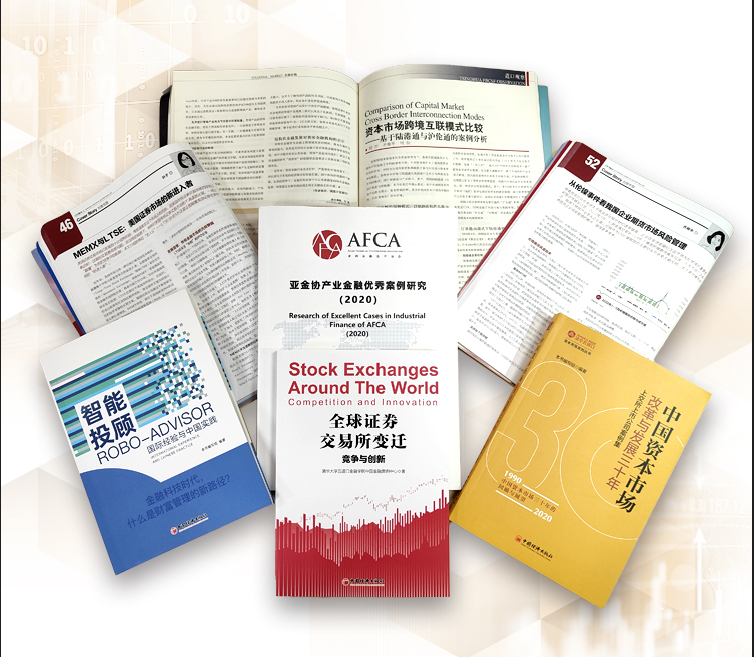 此外,案例中心积极加强与外部机构的合作课题研究,先后与国家乡村振兴局、鸿儒金融教育基金会、亚洲金融合作协会、上海证券交易所、中投研究院、中信证券市场研究部和中信银行等众多机构展开多项合作。2020年,中心承接了亚洲金融合作协会委托课题《亚金协产业金融优秀案例研究》以及上海证券交易所委托课题《中国资本市场改革与发展 - 上交所三十周年上市公司案例集》,为产业金融发展和资本市场改革提供了有力的实证支持。2023年,中心独立出版书籍《全球证券交易所变迁——竞争与创新》,对全球证券交易所的发展历程、竞争格局和创新趋势进行了深入研究;合作出版书籍《智能投顾——国际经验与中国实践》,系统地介绍了智能投顾在国际上的发展经验以及在中国的实践情况。同时,中心研究团队还撰写了多篇高质量的研究报告,多次发表于《清华金融评论》、《银行家》和《浦江科技评论》等刊物。