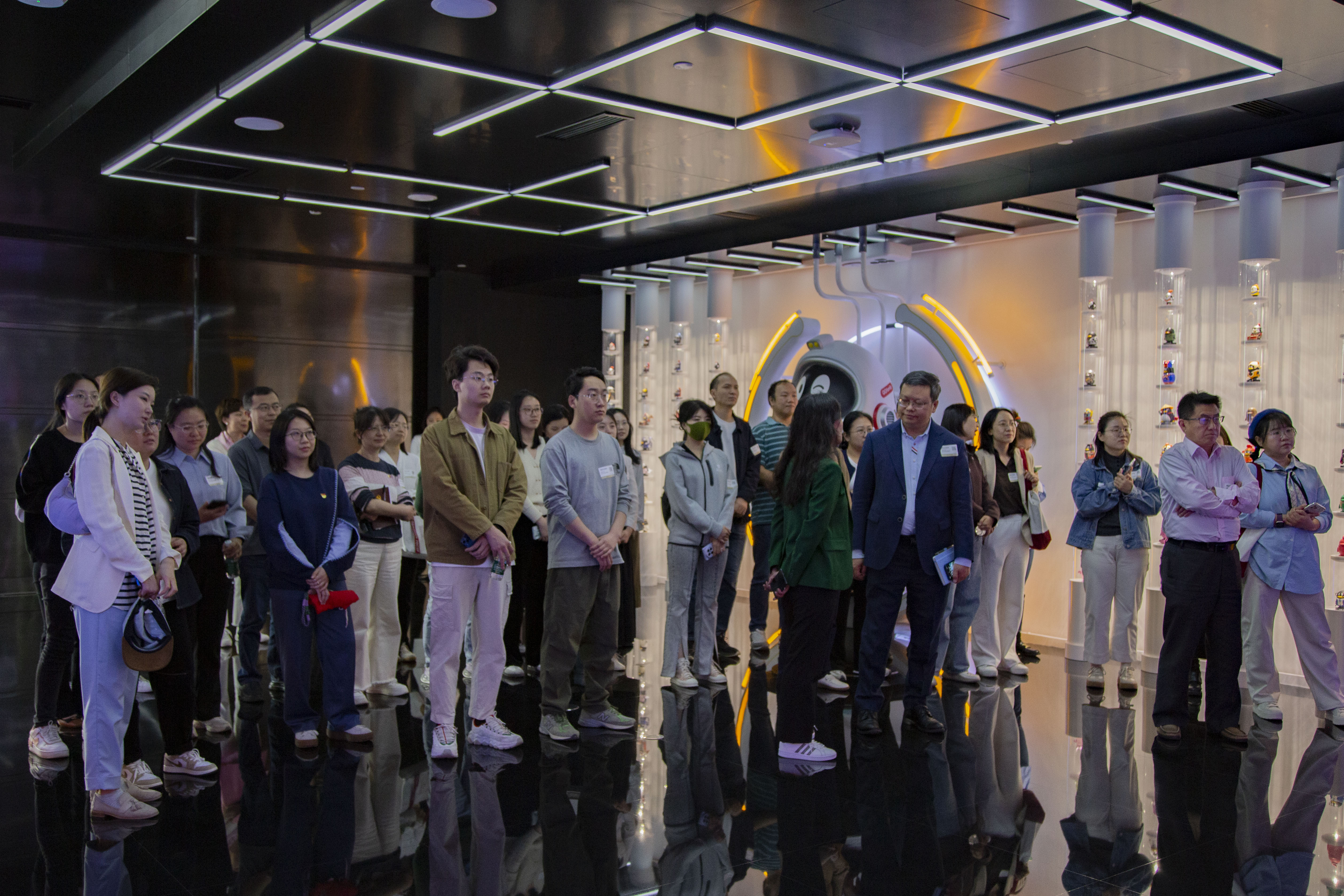 在腾讯总部展厅,大家沉浸式体验了腾讯在数字经济、智慧政务、民生服务等领域的创新成果。在金融科技展区,工作人员详细演示了腾讯云基于区块链技术的供应链金融解决方案,以及利用 AI 风控模型实现毫秒级信贷审批的实践案例。在党建文化参观过程中,大家了解了腾讯集团“党建 + 业务” 双融双促模式,展示了以红色引擎推动科技创新的实践经验。