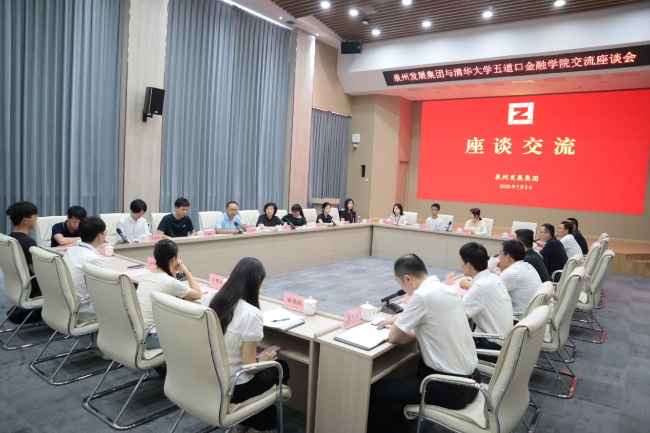 在泉州发展集团座谈会上,金同控股集团总经理夏徐斌介绍了综合金融服务领域的战略布局和发展路径,各权属公司负责人分别就经营概况与业务特色作简要介绍。五道口金融学院党委委员李静芳作为支队学术指导老师,介绍了学院的办学模式、专业特色及人才培养等情况。支队成员围绕新形势下金融行业如何深化产融结合、提升价值创造、平衡创新与合规等方面同泉州发展集团业务骨干深入交流,现场气氛热烈融洽。