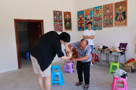 图为实践支队与非遗传承人谭建新深入交流
