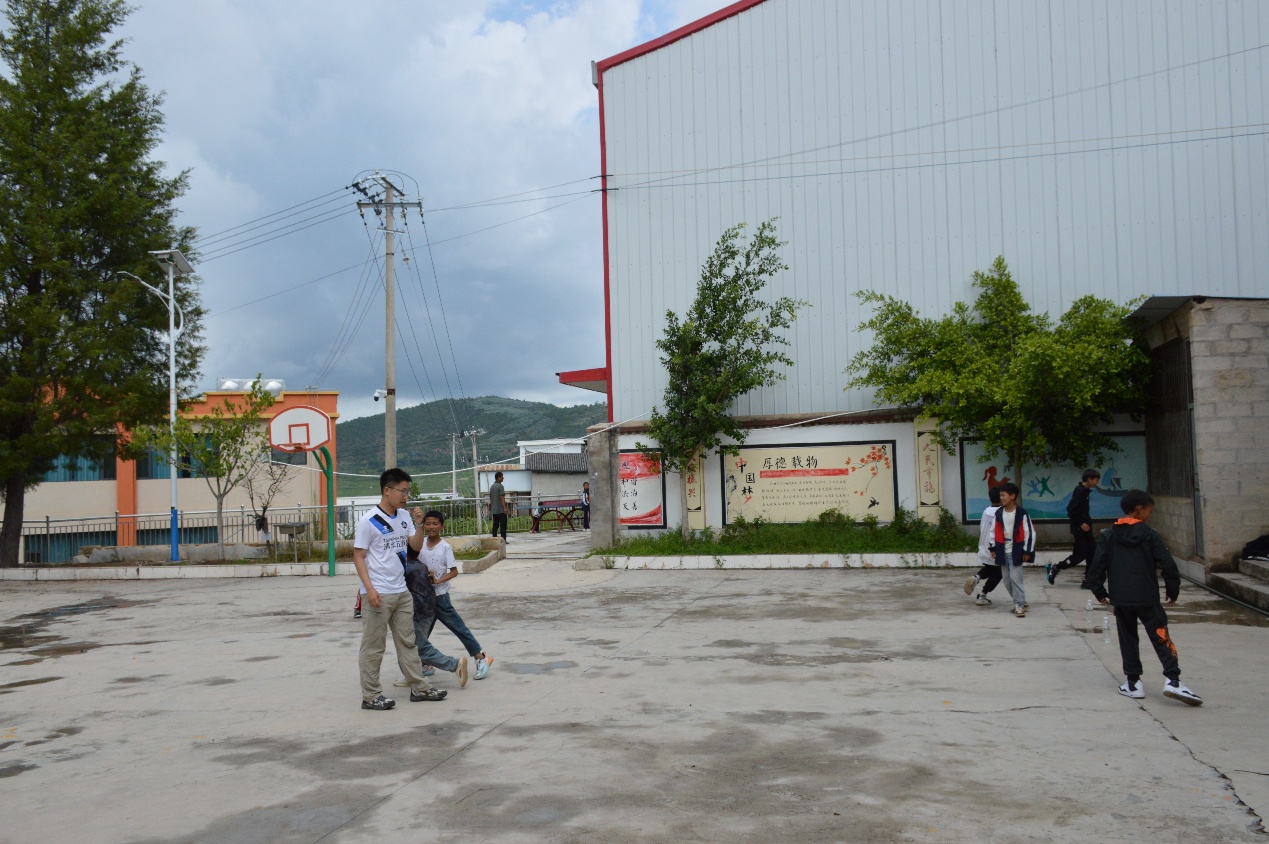 随后,我们走出教室,孩子们兴奋地牵着我们奔向操场,邀请我们一起跳起当地的民族舞蹈——“打跳”。鼓点般的节奏简单而热烈,孩子们拉着我们的手围成圈,脚步轻快有力,笑声此起彼伏。我们很快被他们的热情感染,仿佛不再是来访的客人,而是这片土地日常生活的一部分。